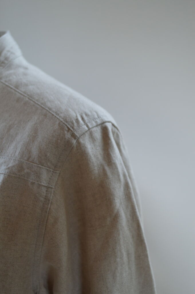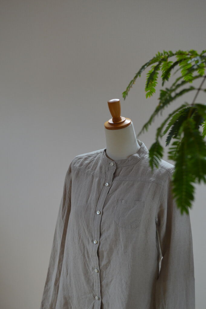 フレンチリネンスタンドカラーシャツ