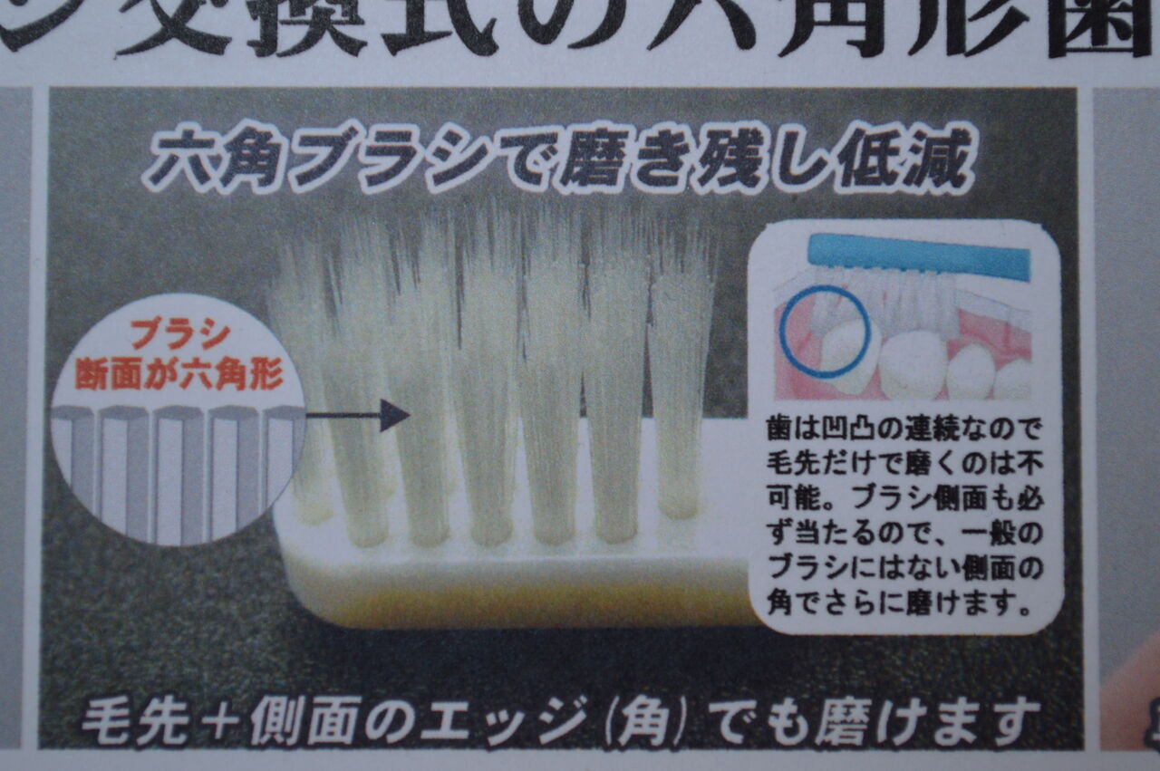 【ブラシ交換式の六角形歯ブラシ】